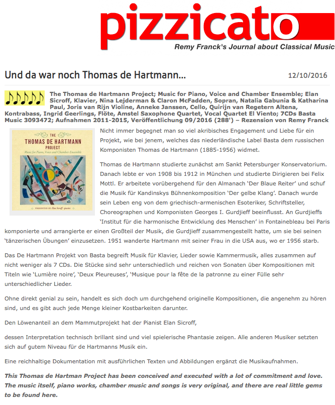 It’s not often that one encounters such meticulous love and commitment for a project as that dedicated to the Russian composer Thomas de Hartmann by the Dutch label Basta.