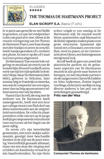 Sicroff has the talent of presenting de Hartmann’s pianistical perfume, as well as the inherent meaning of his music in a wonderful way. With musical collaborators like sopranos Claron McFadden and Nina Lejderman, flutist Ingrid Geerlings and violinist Joris van Rijn (among others) the calibre of the recordings is guaranteed.